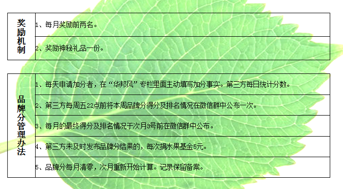 3、底线规则:A迟到人员俯卧撑或深蹲10个并扣1000枚品牌分。