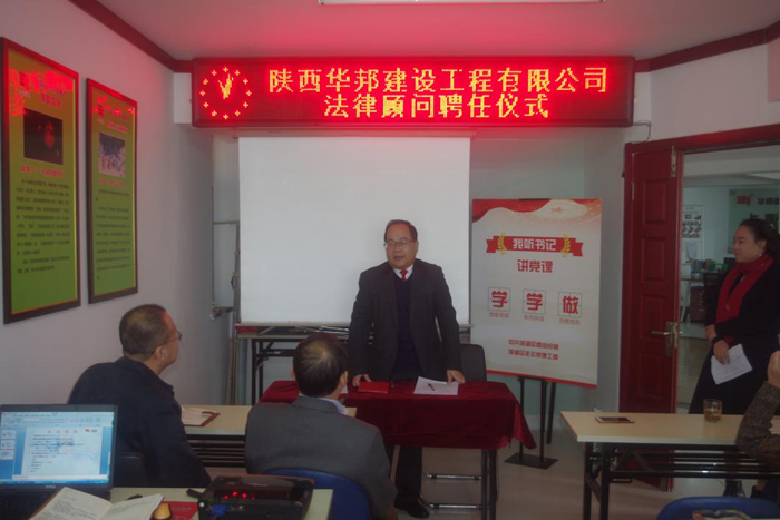 雷律师作为该所金牌律师,具有丰富的从业经验,熟悉现行法律、法规与规章,实践经验丰富,二十多年,先后参与办理各类诉讼案件上百件,为当事人挽回损失多达数千万元。对工程领域的法律事务尤为专业。他的加盟,将凭借深厚的法律功底和丰富的实践经验,帮助员工普及法律知识,增强法治观念,参与规章制度建设,审查对外协议合同,防范经营管理风险,维护公司合法权益起到积极促进作用。行总在讲话中指出:聘请雷永定律师担任公司法律顾问,是公司在发展一带一路、服务追赶超越,“聚焦‘三六九’、振兴大西安”背景下作出的重要决策,我们要实现“节能钢结构专家”的宏伟目标,要在钢结构技术、加工、施工、管理等四个方面全面升级进步,就必须依法经营,加强管理,提高遵纪守法自觉性,市场经济条件下,要求我们必须学法、懂法、用法,以法律规范我们的方方面面,有效防范、规避各种商业风险,使公司经营、管理工作走上健康、有序发展的快车道。雷律师加入我们华邦团队,一定会对我们的各项工作起到推动作用,增强我们实现“节能钢结构专家”目标的信心和底气,我们全体员工要加强学习与交流沟通,忠诚履职,敢于担当,为实现我们美好的未来贡献自己的聪明才智。