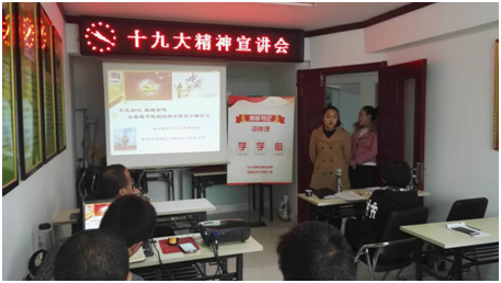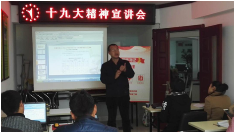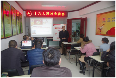 党支部王书记在对习近平总书记报告进行梳理基础上,对十九大精神进行解读与辅导。十九大是在全面建成小康社会决胜阶段、中国特色社会主义进入新时代的关键时期召开的一次十分重要的大会。大会主题是不忘初心,牢记使命,高举中国特色社会主义伟大旗帜,决胜全面建成小康社会,夺取新时代中国特色社会主义伟大胜利,为实现中华民族伟大复兴的中国梦不懈奋斗。