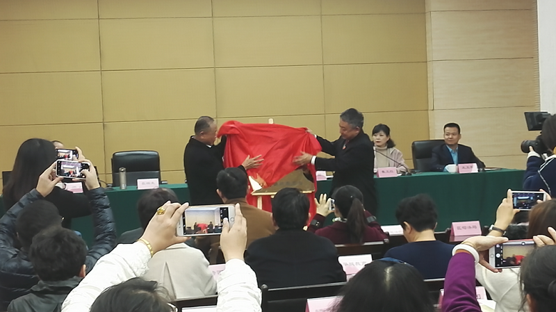 区工商联党组书记王卫军、区工商联主席袁瑞生为“莲湖区民营企业纠纷人民调解委员会”揭牌。