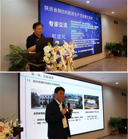 中建西北院首席总工程师、教授级高工杨琦、中建西北院副总建筑师、教授级高工职建民和陕建集团首席专家、教授级高工李存良作为专家代表,分享了他们对钢结构新质生产力的理解,以及对钢结构未来发展趋势的分析。