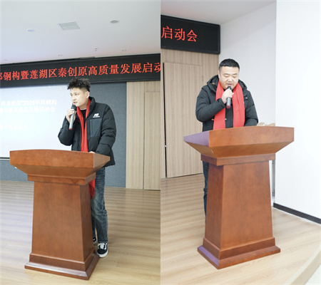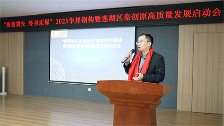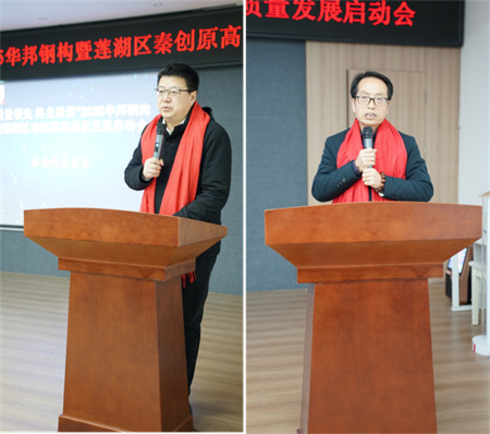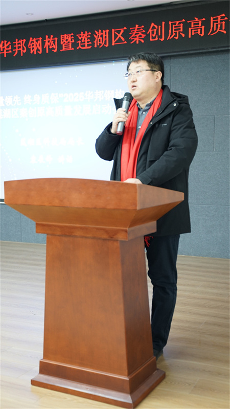 莲湖区科技局局长袁展锋在讲话中指出,华邦钢结构作为我省钢结构行业的标杆企业,始终坚持科技创新,注重产品质量,为莲湖区经济社会发展做出了积极贡献。莲湖区作为西安市中心城区,始终把科技创新作为推动高质量发展的核心动力。近年来,莲湖区大力实施创新驱动发展战略,不断优化创新生态,集聚创新资源,培育创新主体,全区科技创新能力显著提升。袁局长希望华邦钢结构以此次启动会为契机,坚持创新驱动,加大研发投入,加强核心技术攻关,不断提升产品质量和核心竞争力,努力打造国内一流、国际知名的钢结构品牌。