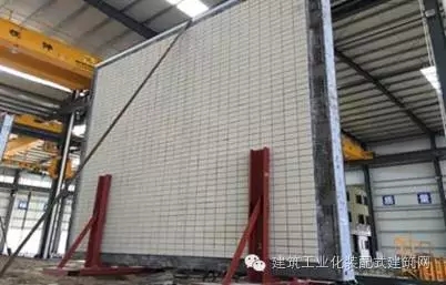 墙体吊装测试:使用吊装横梁将墙体与吊车吊钩相连接;翻身完成后将墙体竖直放置,使用支撑措施,观察墙体外观有无开裂现象。