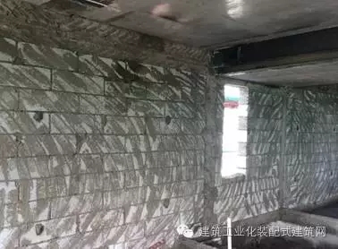 发泡混凝土施工:浇筑发泡混凝土试块浇筑;墙体另一面水泥纤维盖板施工。