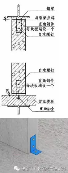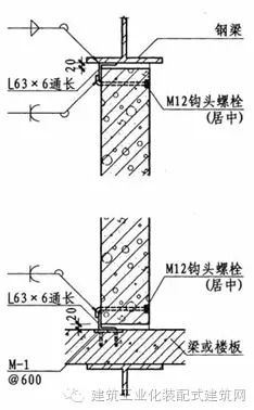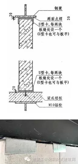 (2)墙板内嵌安装的直角钢件节点,不易适应钢梁的变形,易引起裂缝。