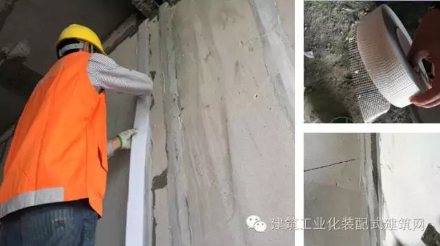 耐碱玻纤网+基层填缝砂浆+抗裂纸带+弹性腻子。