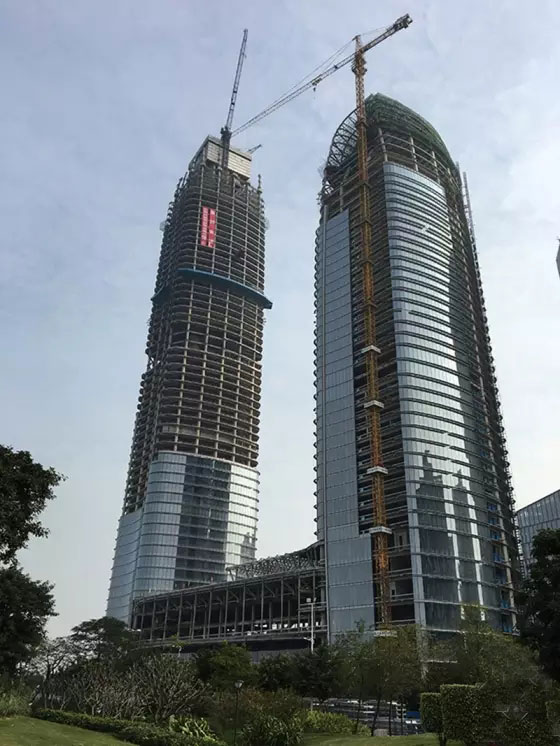 设计高度311米。它和去年12月冠顶合拢的洲际酒店塔楼一起,勾勒出一抹优美的珠江空际线。