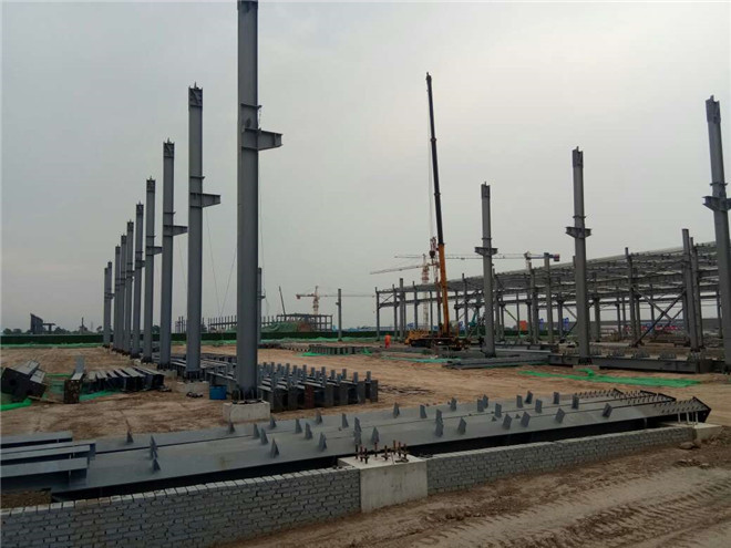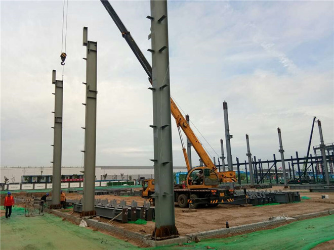 钢结构厂房在建项目名称:吉利钢结构厂房次构件安装与钢柱安装