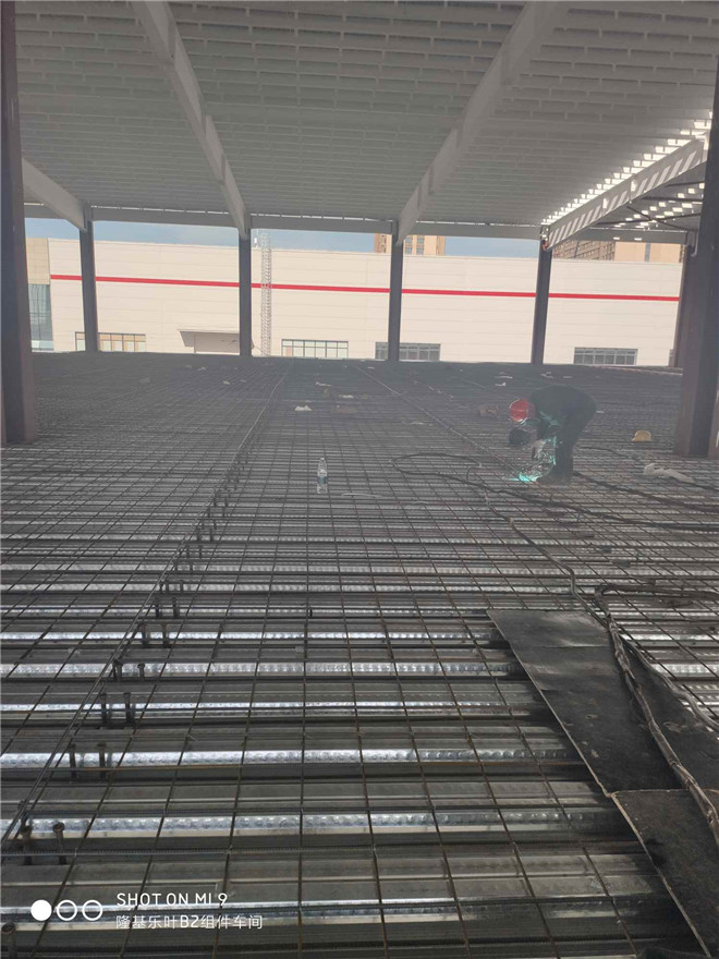 隆基乐叶钢结构厂房钢梁安装与栓钉焊接