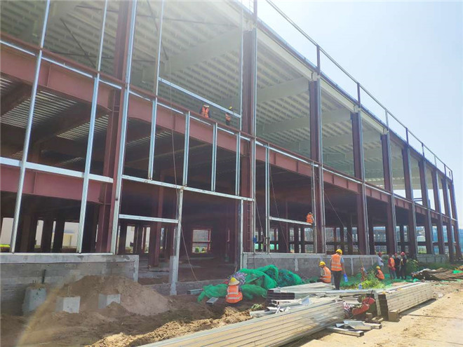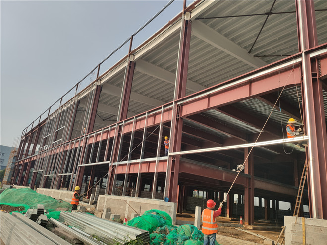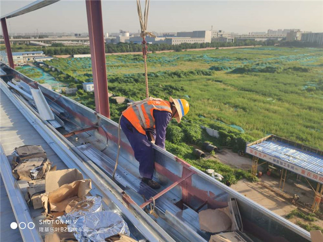 隆基乐叶钢结构厂房墙面檩条施工